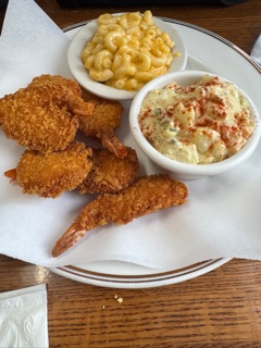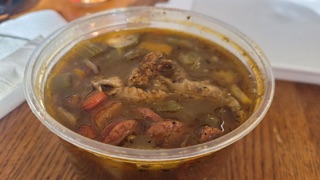Now, this is what Southern comfort food is all about. The fried catfish was large and crispy, and the oxtails came off the bone. We had yummy mac and cheese, delicious spicy seafood gumbo, and crispy